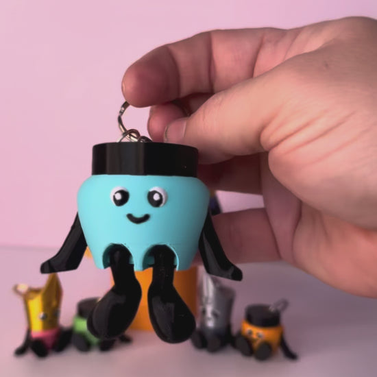 Meet Blot! This flexible 3D-printed keychain features an endearing ink bottle character complete with floppy arms and legs.