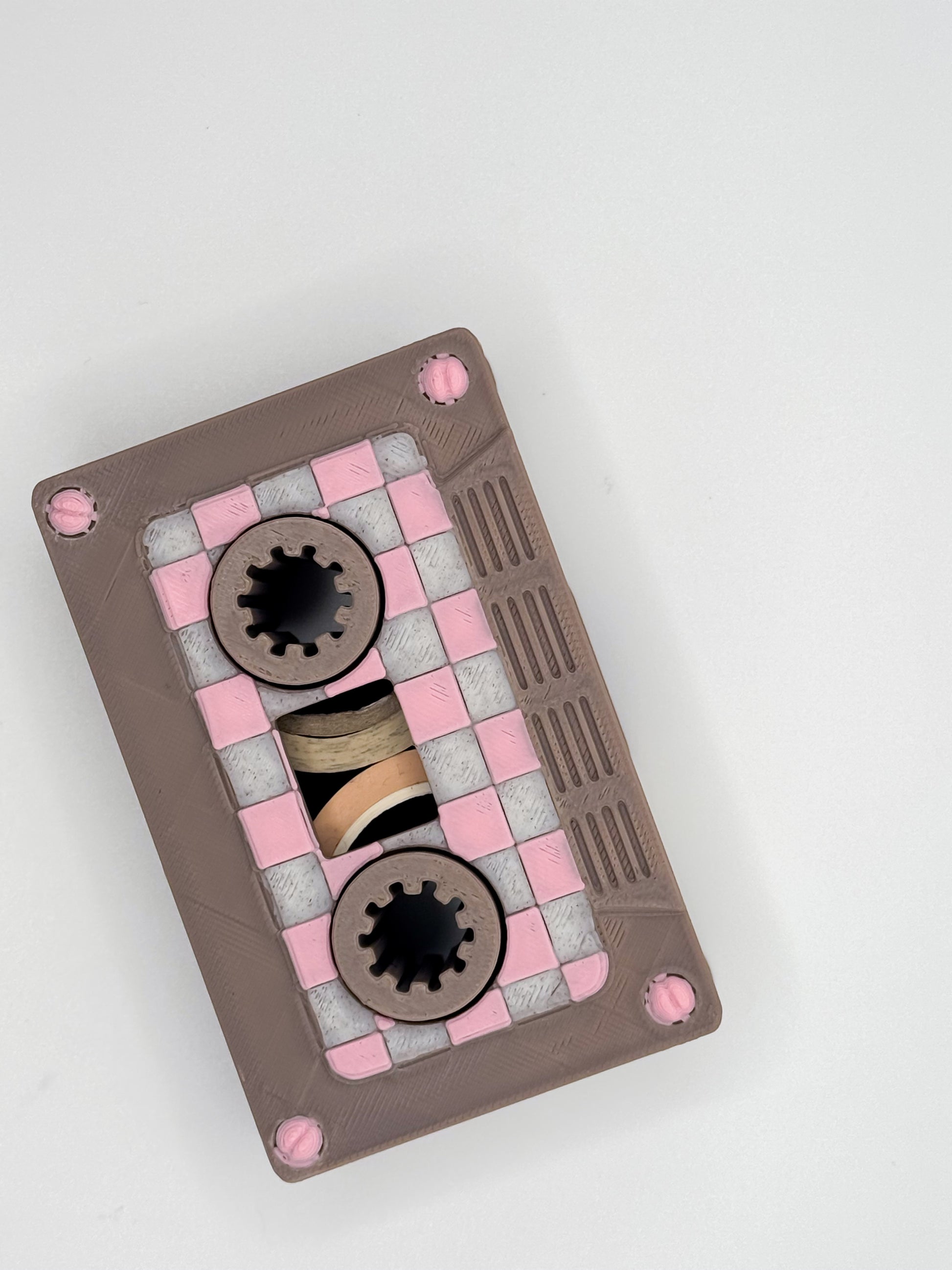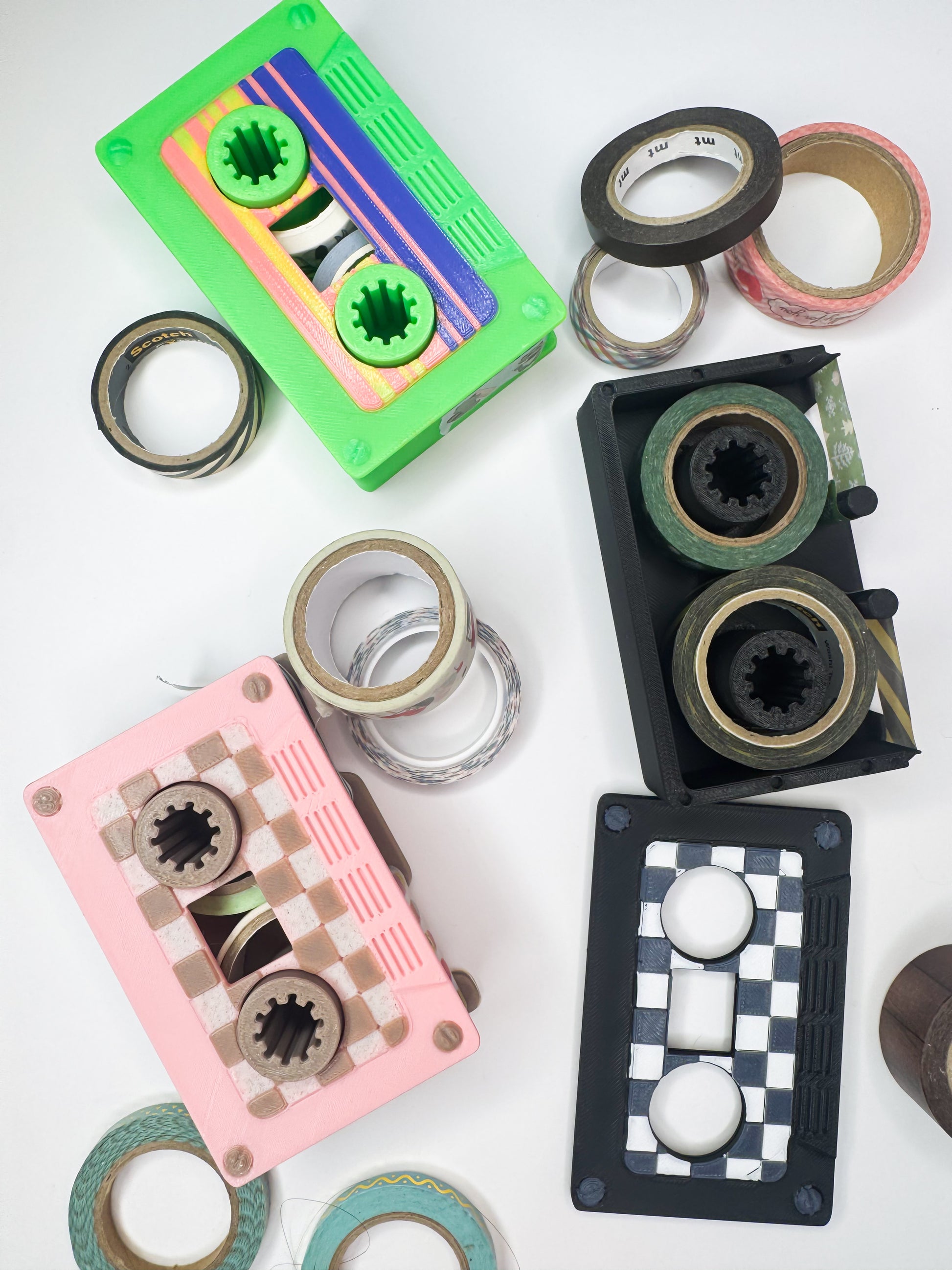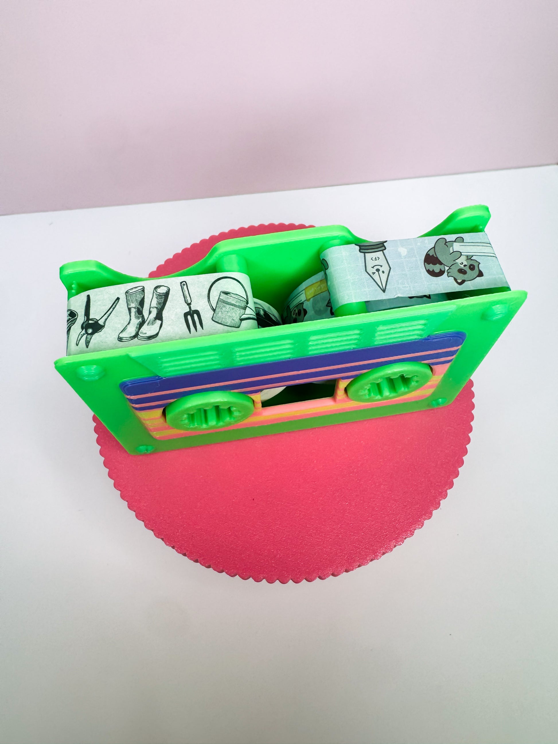 Store your washi tape collection in nostalgic style with our 3D printed Cassette Washi Tape Holder! This playful retro cassette design features a removable front panel that reveals storage space for two washi tape rolls. Each compartment includes built-in tape cutters, making journaling sessions more fun and efficient. Perfect for organizing your creative supplies while adding a touch of vintage charm to your workspace!