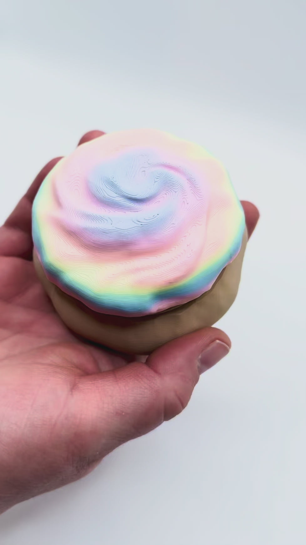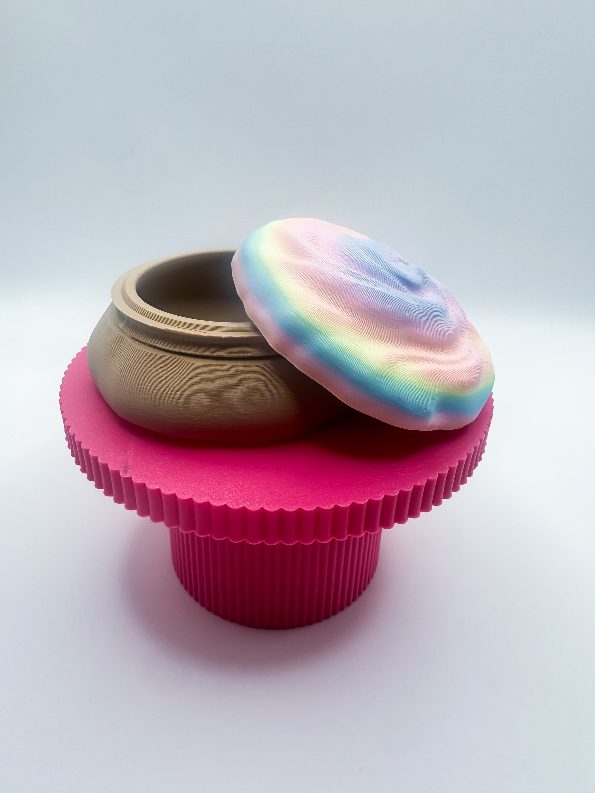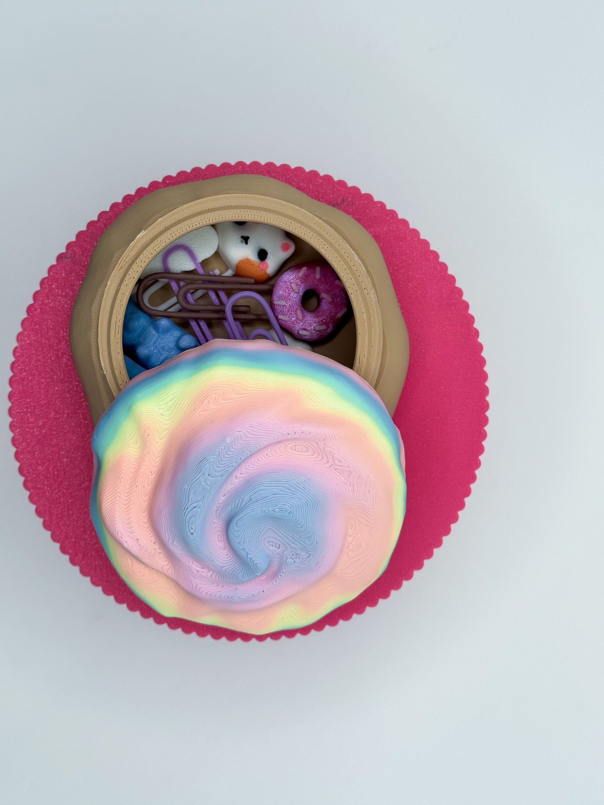 Meet your new favorite cookie! This 3D-printed cookie container, decked out in rainbow icing, is not just a sweet sight: twist off the top to stash small goodies like paper clips, hair ties, or loose change. It's the ultimate way to keep your bits and bobs organized, all while looking like a snack that’s too cute to eat!