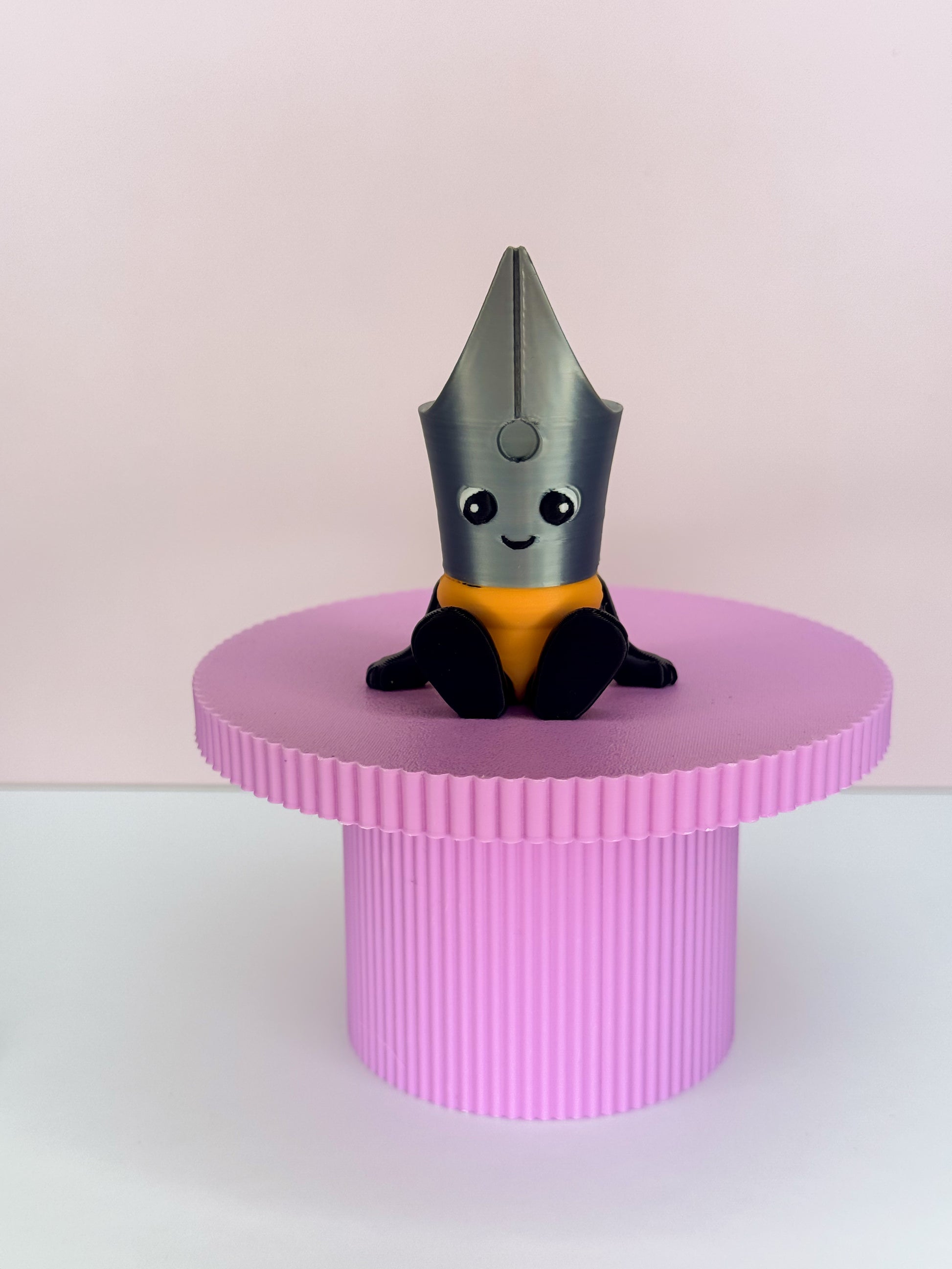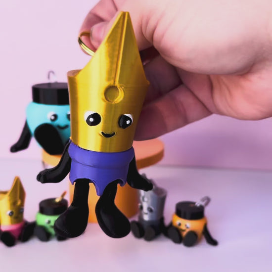 Meet Peni- short for Penelope Point. This flexible 3D-printed charm features an endearing fountain pen nib character complete with tiny moveable arms and legs.